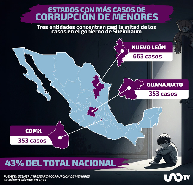 En 2025, las denuncias por corrupción de menores en México alcanzaron 3 mil 199 casos, la cifra más alta en al menos una década, de acuerdo con datos del Secretariado Ejecutivo del Sistema Nacional de Seguridad Pública (SESNSP) analizados por la agencia de investigación TResearch.