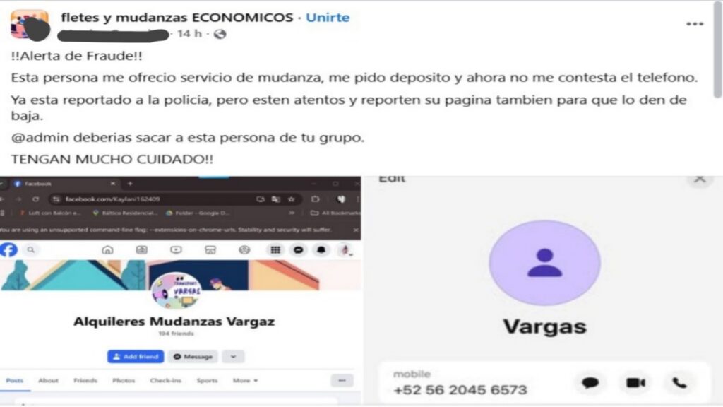 En redes sociales y portales especializados existen casos de fraude en mudanzas, donde las y los clientes no reciben sus bienes o depósitos en zonas como Ciudad de México, Estado de México y Puebla.