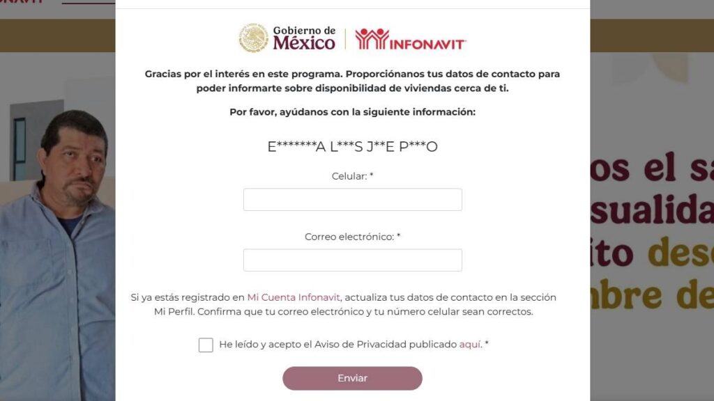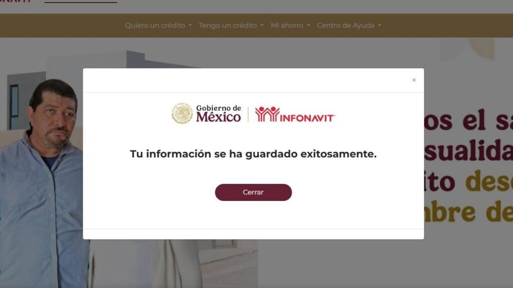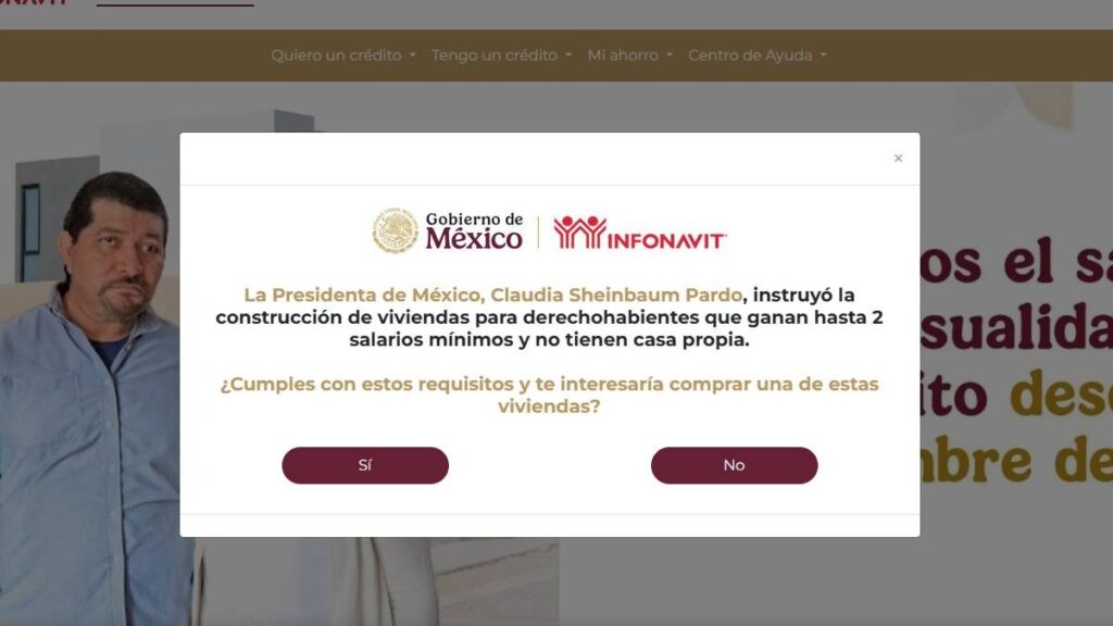 - Dar clic en “Sí” en el anuncio donde se informa que el Gobierno de México instruyó la construcción de viviendas para quienes ganan hasta 2 salarios mínimos y no tienen casa propia