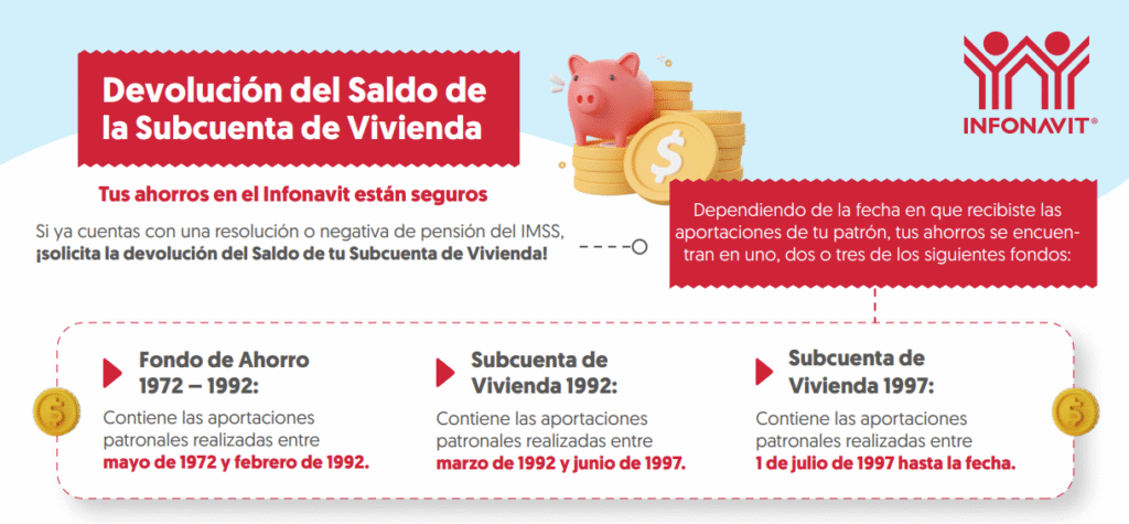 El desconocimiento sobre el destino de estos recursos es común, particularmente al llegar a la edad de jubilación. El mecanismo para acceder a la devolución de este dinero varía sustancialmente dependiendo de la fecha en que el trabajador comenzó a cotizar ante el instituto y del régimen de ley bajo el cual se procese su retiro ante el Instituto Mexicano del Seguro Social (IMSS).