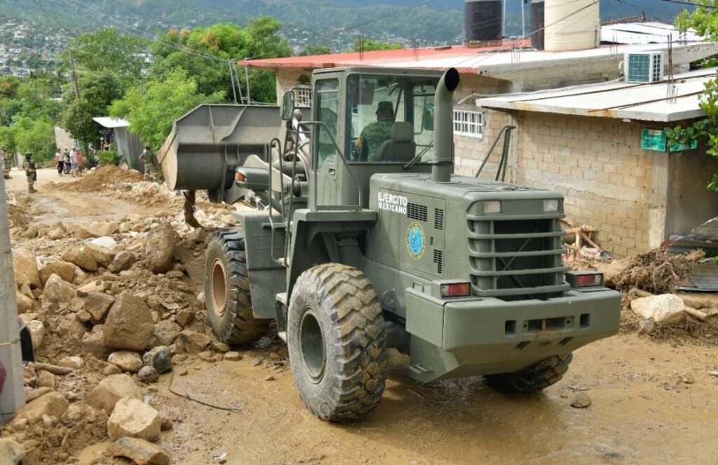 La Secretaría de la Defensa Nacional desplegó 52 unidades de maquinaria pesada, incluyendo volteos, retroexcavadoras, motoniveladoras y cargadores frontales, en los estados más afectados.
