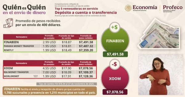 En su intervención en la mañanera, Iván Escalante, titular de Profeco, destacó que Finabien sigue siendo la mejor alternativa como remesadora para los paisanos que envían dinero de Estados Unidos a México.