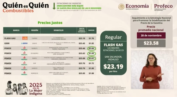 – La Procuraduría Federal del Consumidor (Profeco) presentará los precios promedios de gasolina y de la canasta básica, así como la mejor remesadora para los paisanos que envían dinero desde Estados Unidos y algunos consejos para los consumidores.