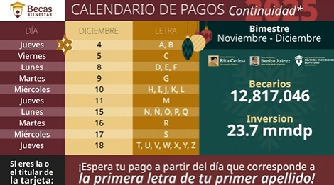 El funcionario presentó el calendario de pago del bimestre noviembre-diciembre para las becas Rita Cetina, Benito Juárez y del programa Jóvenes Escribiendo el Futuro.