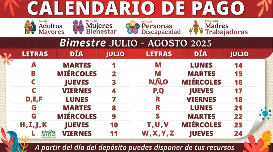 La funcionaria compartió el calendario oficial del pago correspondiente al bimestre julio-agosto de los programas del Bienestar.