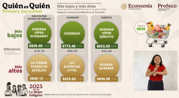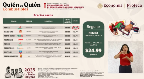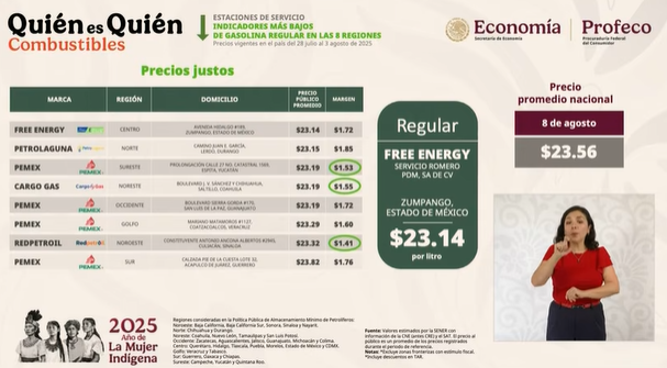 – Profeco, con la sección “Quién es Quién en Los Precios”, en la que dará a conocer los costos promedio de la gasolina y la canasta básica, así como recomendaciones para la ciudadanía