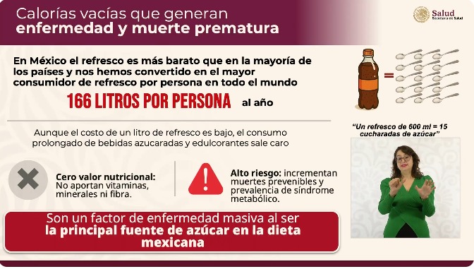 El funcionario de Salud, explica que en nuestro país se consumen, en promedio, 166 litros por persona de refresco anualmente.