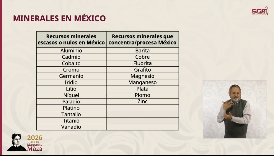 Marcelo Ebrard detalla cuáles minerales tiene y cuáles no México, entre los existentes resaltan el cobre, el grafito y la plata. Entre los que no se encuentran: el litio (existe, pero no se procesa), el titanio y el aluminio.