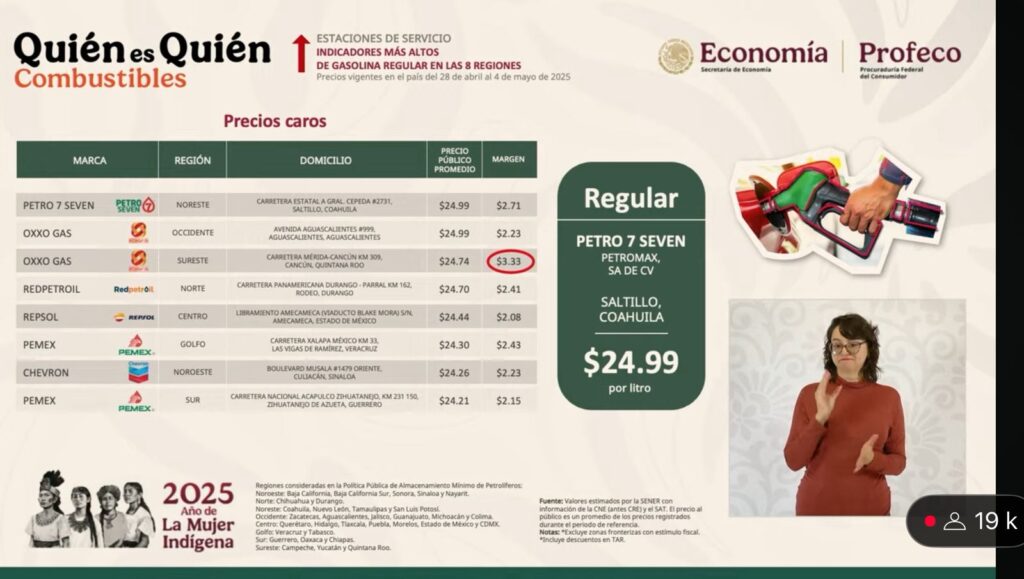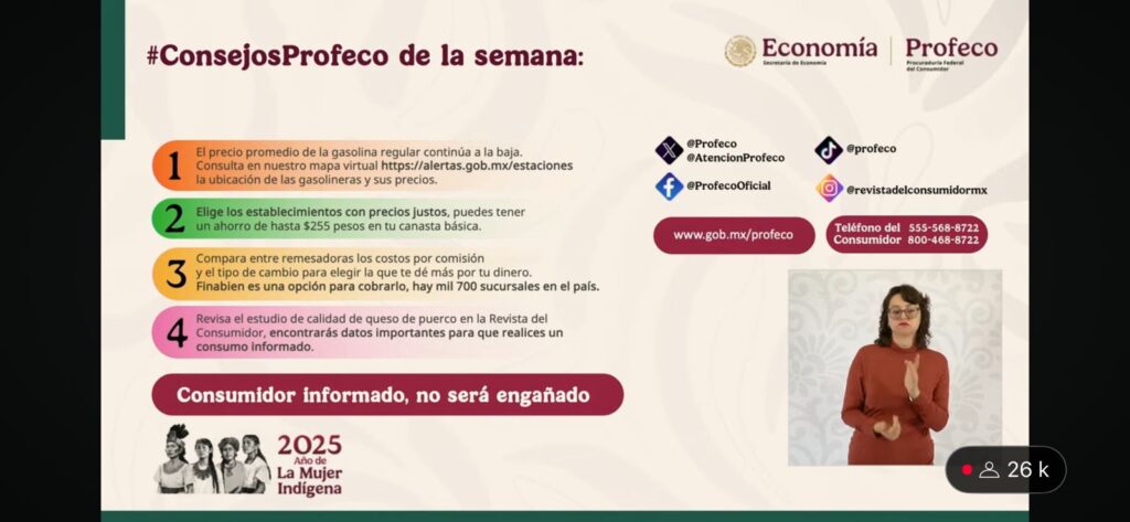 – Profeco, con la sección “Quién es Quién en Los Precios” en la que dará a conocer los costos promedio de la gasolina y la canasta básica, así como recomendaciones para la ciudadanía