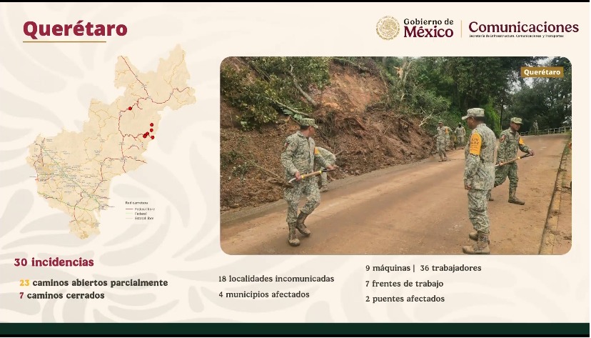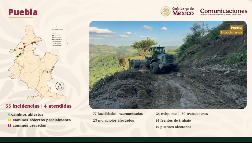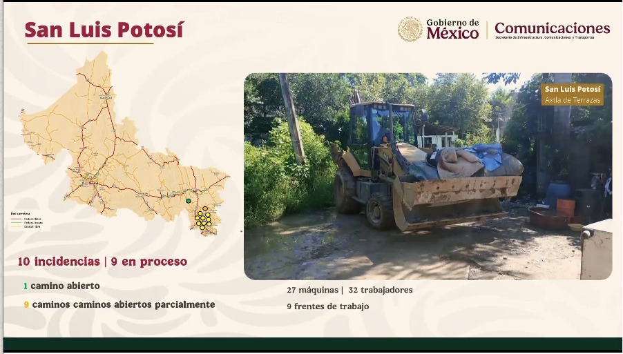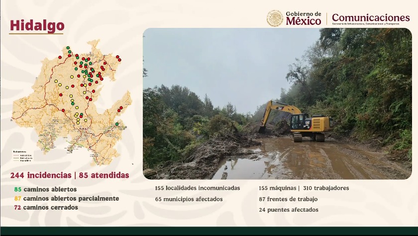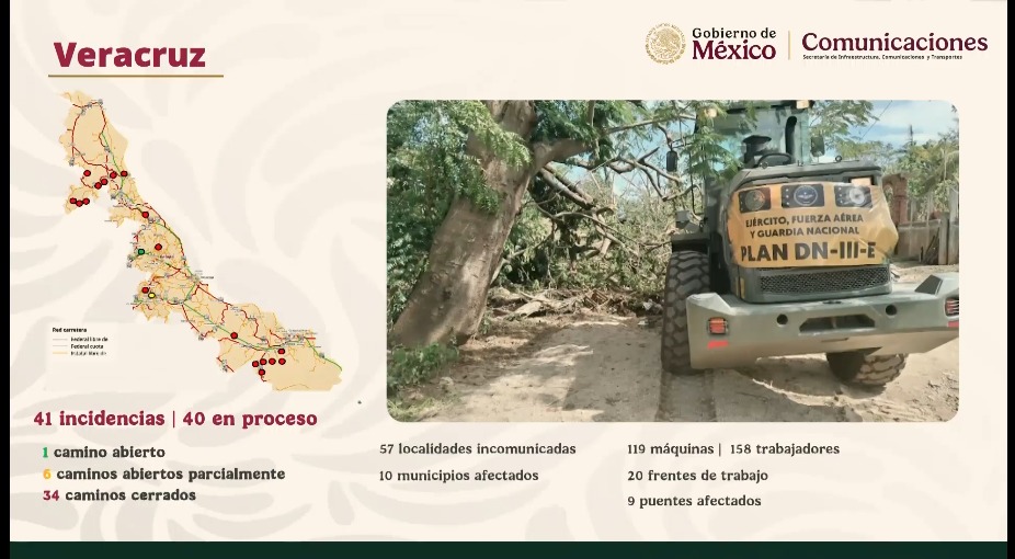 Jesús Esteva Ofrece información sobre los caminos bloqueados, “más de 358 incidencias pro atender, incluyen caminos, puentes y asfalto”.