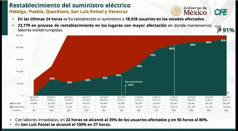 Emilia Esther Calleja Alor, directora de la CFE habla del restablecimiento del suministro eléctrico en los estados afectados.