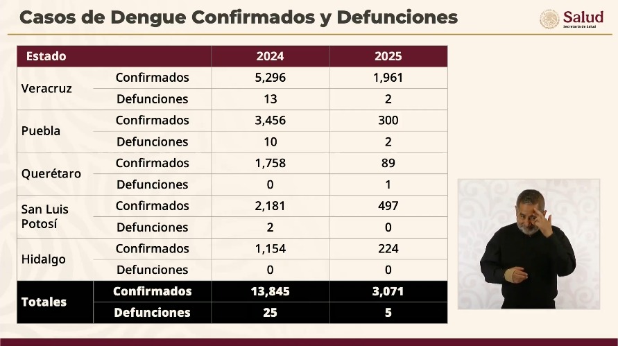 Informa también de al situación del dengue por inundación, contrasta con datos de 2024 vs 2025