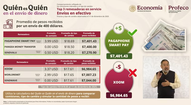 En su intervención en la mañanera, Iván Escalante, titular de Profeco, destacó que Finabien sigue siendo la mejor alternativa como remesadora para los paisanos que envían dinero de Estados Unidos a México.