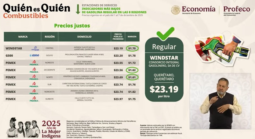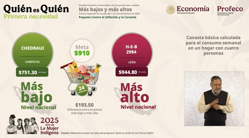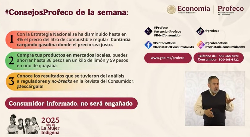 – La Procuraduría Federal del Consumidor (Profeco) presentará los precios promedios de gasolina y de la canasta básica, así como la mejor remesadora para los connacionales que envían dinero desde Estados Unidos y algunos consejos para los consumidores.