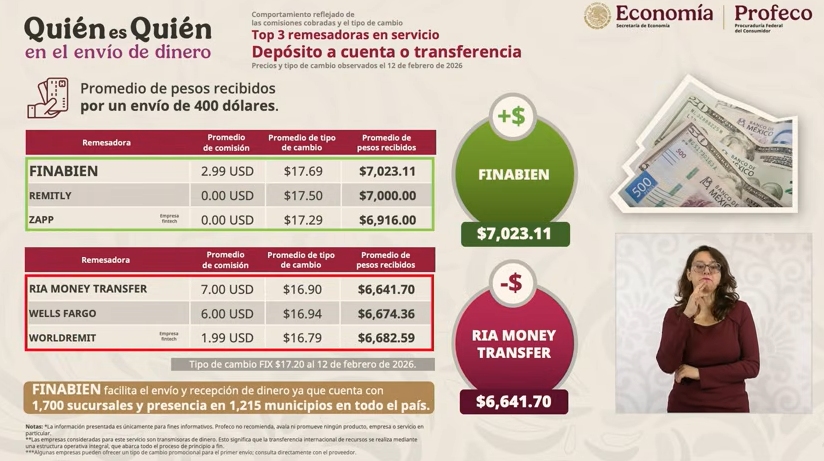 En su intervención en la mañanera, Iván Escalante, titular de Profeco, destacó que Finabien sigue siendo la mejor alternativa como remesadora para los paisanos que envían dinero de Estados Unidos a México.