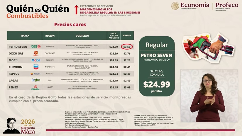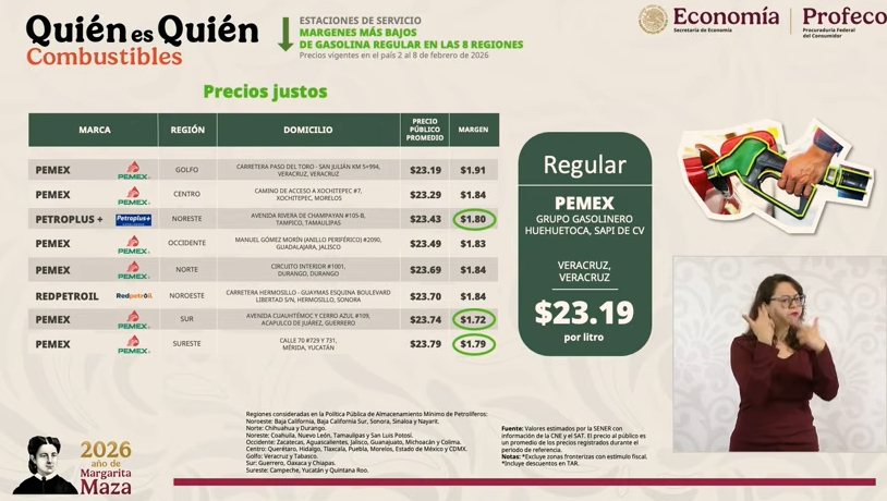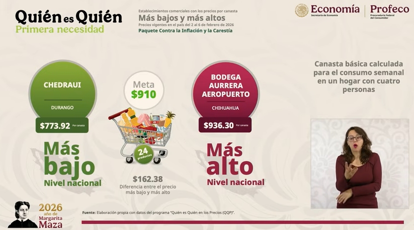 – La Procuraduría Federal del Consumidor (Profeco) para presentar los precios promedios de la gasolina y de la canasta básica, así como la mejor remesadora para los connacionales que residen en Estados Unidos.