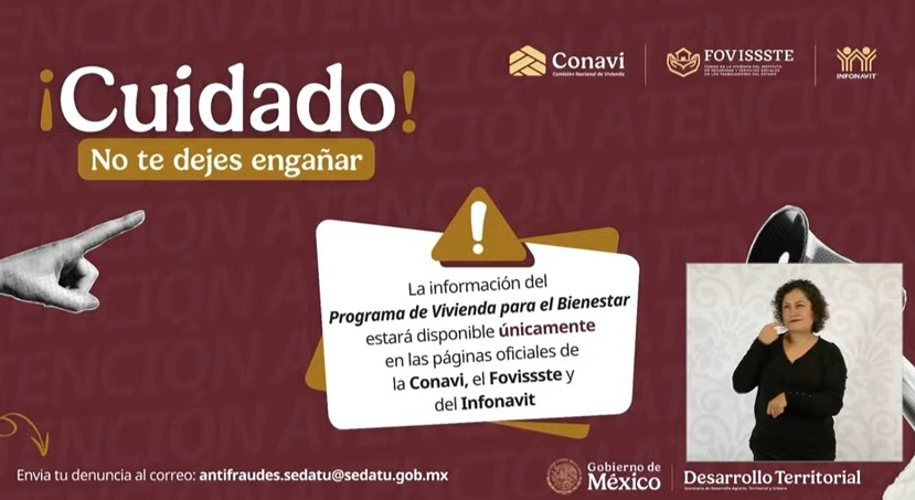 La funcionaria pidió a la ciudadanía no dejarse engañar. Indicó que la información del programa estará disponible únicamente en las páginas del Conavi, Fovissste e Infonavit.