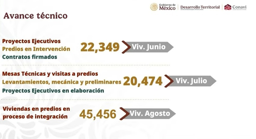 Edna Elena Vega Rangel, secretaria de Desarrollo Agrario, Territorial y Urbano (Sedatu) presentó los avances del programa Viviendas para el Bienestar.