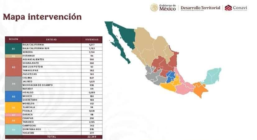 El funcionario señaló que hay un total de 22 mil 249 viviendas repartidas en las 32 entidades federativas.