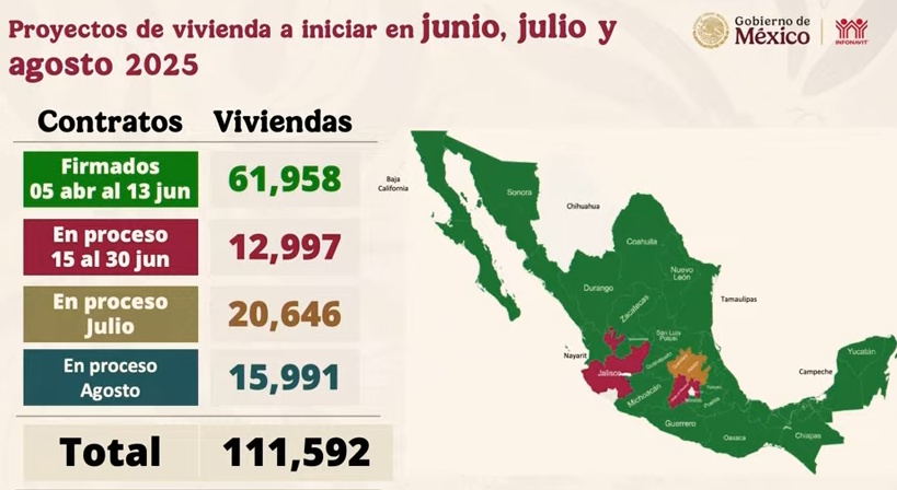 El funcionario indicó los proyectos de vivienda a iniciar para los meses de junio, julio y agosto. En total serán 111 mil 592.