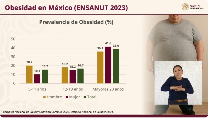 David Kershenobich Stalnikowitz habla de lo negativo de las bebidas azucaradas. “Cuatro de cada 10 niños padece obesidad en México”. Muestra cifras de obesidad.