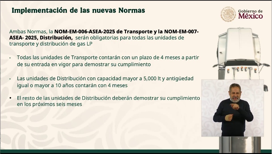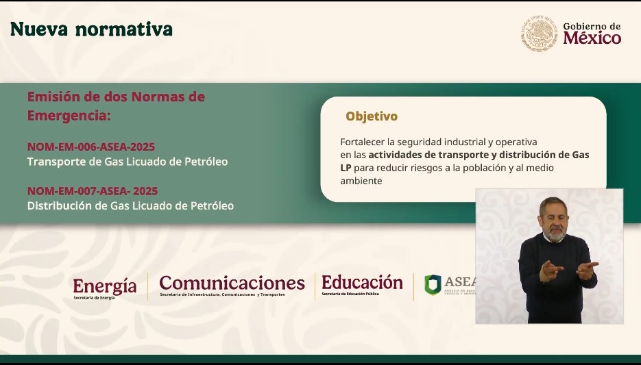 Presenta dos normas emergentes en conjunto con la SENER y la SICT para la transportación de Gas LP. Luz Elena González comenta que se busca reforzar la seguridad ene l transporte de combustibles.