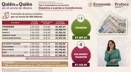 En su intervención en la mañanera, Iván Escalante, titular de Profeco, destacó que Finabien sigue siendo la mejor alternativa como remesadora para los paisanos que envían dinero de Estados Unidos a México.
