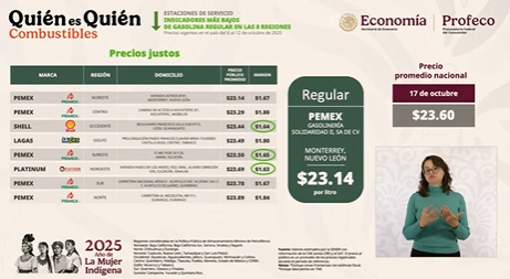 – Profeco, con la sección “Quién es Quién en Los Precios”, en la que dará a conocer los costos promedio de la gasolina y la canasta básica, así como recomendaciones para la ciudadanía