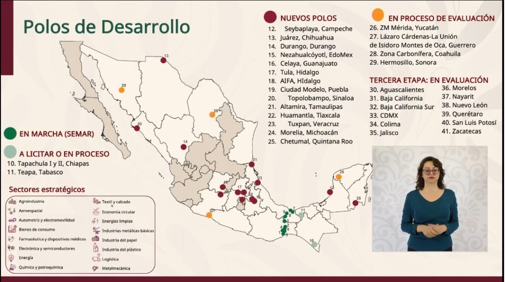 En los Polos del Bienestar se realizarán estrategias para facilitar la llegada de inversión nacional y extranjera en los temas más variados, destacan: Automovilística, farmacéutica, papel, plásticos, metales, etc.