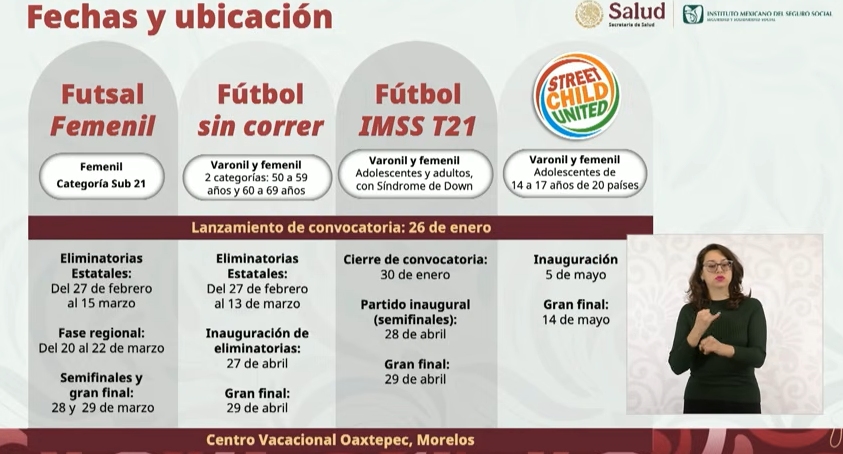 Detalló que en el IMSS habrá tres mundialitos y una copa internacional, los cuales serán de la siguiente manera: