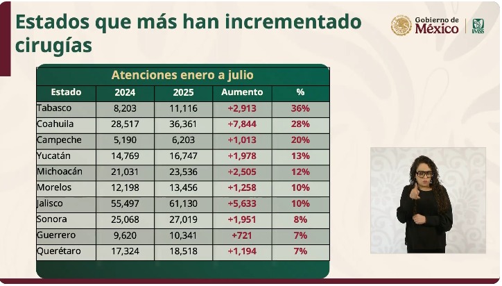 El titular del IMSS da cuenta de los estados que más han incrementado la cantidad de cirugías a nivel nacional, con Tabasco a la cabeza.