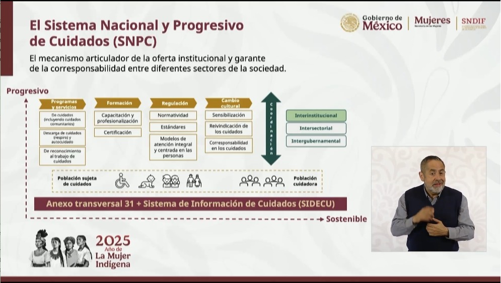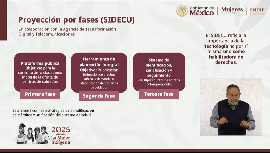 María del Rocío García Pérez, titular del DIF, comparte avances para consolidar un Sistema de Cuidados. Presenta el (Sistema de Información de Cuidados) SIDECU que tendrá dos grandes objetivos: mapear la capacidad en materia de prestación de servicios, para que cualquier ciudadano o ciudadana pueda localizar el centro más cercano de cuidados. Ya se han identificado 118 mil 618 centros para el apoyo a cuidadores.