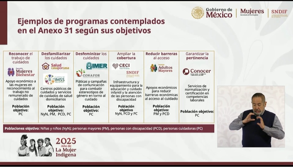 En su oportunidad, el titular del IMSS, Zoé Robledo habla sobre la participación de las mujeres en trabajo remunerado y no remunerado. Explica que para 2026 se prevé la edificación de 150 CECIs construidos y mil para 2030. Son guarderías cercanas a los centros de trabajo, especialmente de las mujeres.