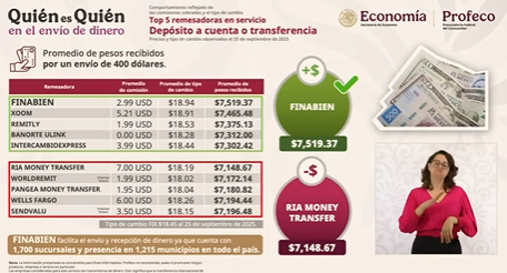 En su intervención en la mañanera, Iván Escalante, titular de Profeco, destacó que Finabien sigue siendo la mejor alternativa como remesadora para los paisanos que envían dinero de Estados Unidos a México.