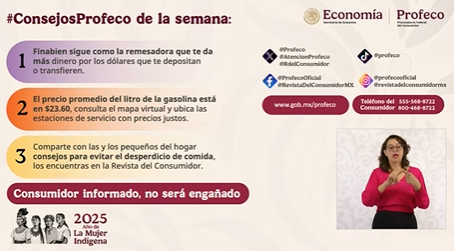 – Profeco, con la sección “Quién es Quién en Los Precios”, en la que dará a conocer los costos promedio de la gasolina y la canasta básica, así como recomendaciones para la ciudadanía