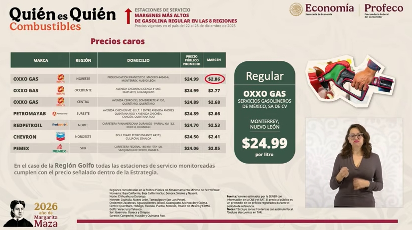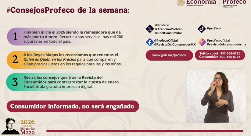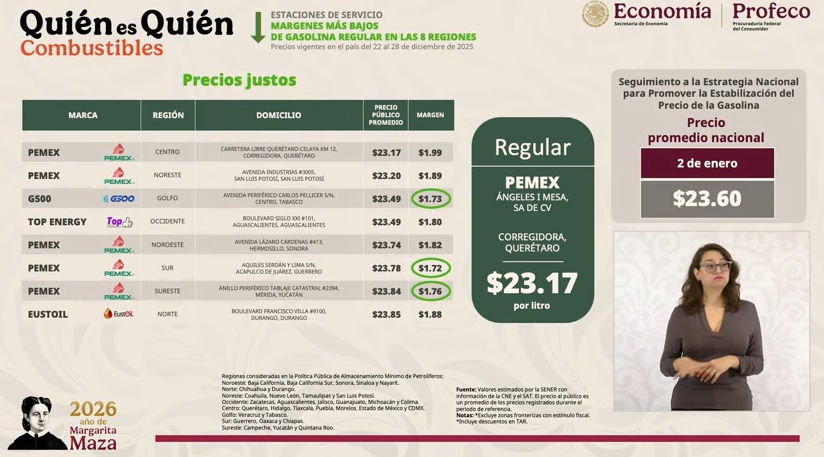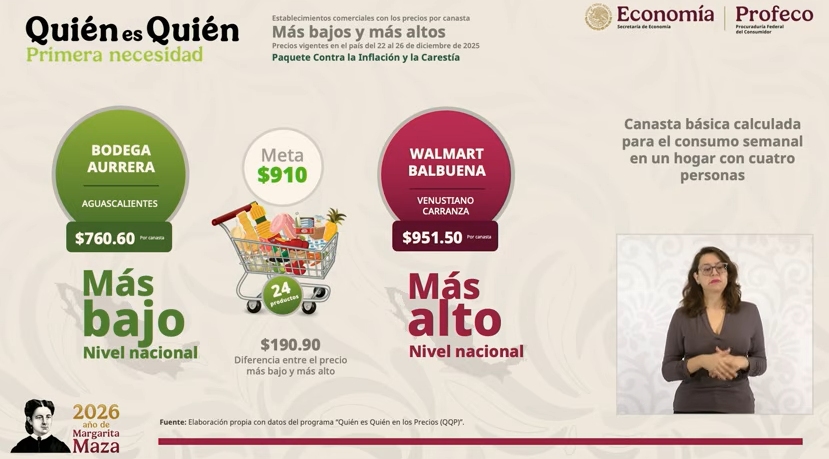 – La Procuraduría Federal del Consumidor (Profeco) para presentar los precios promedios de la gasolina y de la canasta básica, así como la mejor remesadora para los connacionales que residen en Estados Unidos.