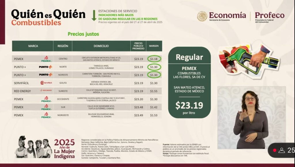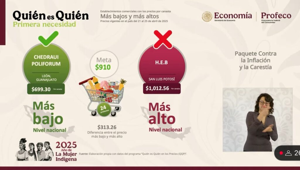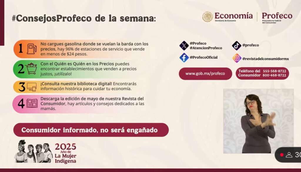 – Profeco, con la sección “Quién es Quién en Los Precios” en la que dará a conocer los costos promedio de la gasolina y la canasta básica, así como recomendaciones para la ciudadanía.