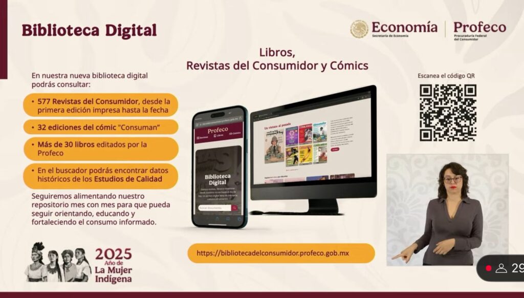 Anunció una nueva biblioteca digital donde se pueden encontrar libros, revistas del consumidor y cómics. Se puede consultar en la página web de Profeco.