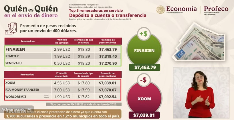 En su intervención en la mañanera, Iván Escalante, titular de Profeco, destacó que Finabien sigue siendo la mejor alternativa como remesadora para los paisanos que envían dinero de Estados Unidos a México.
