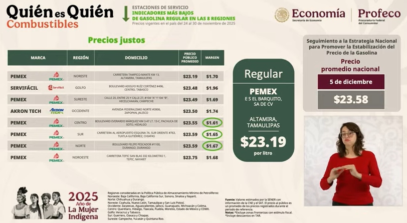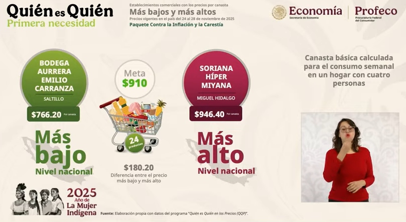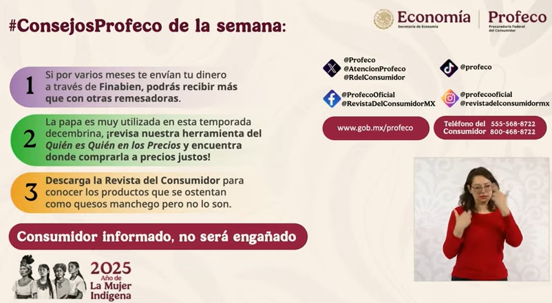 – La Procuraduría Federal del Consumidor (Profeco) presentará los precios promedios de gasolina y de la canasta básica, así como la mejor remesadora para los connacionales que envían dinero desde Estados Unidos y algunos consejos para los consumidores.