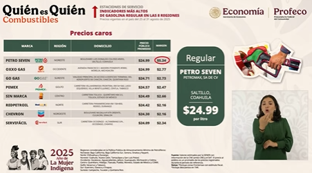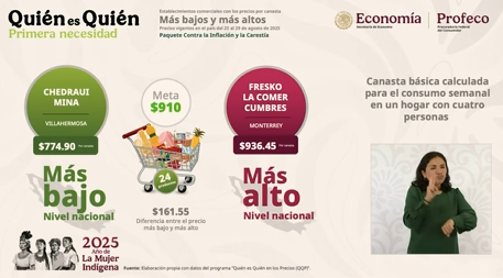 Presentó, como cada semana, los precios promedios de la gasolina y la canasta básica.