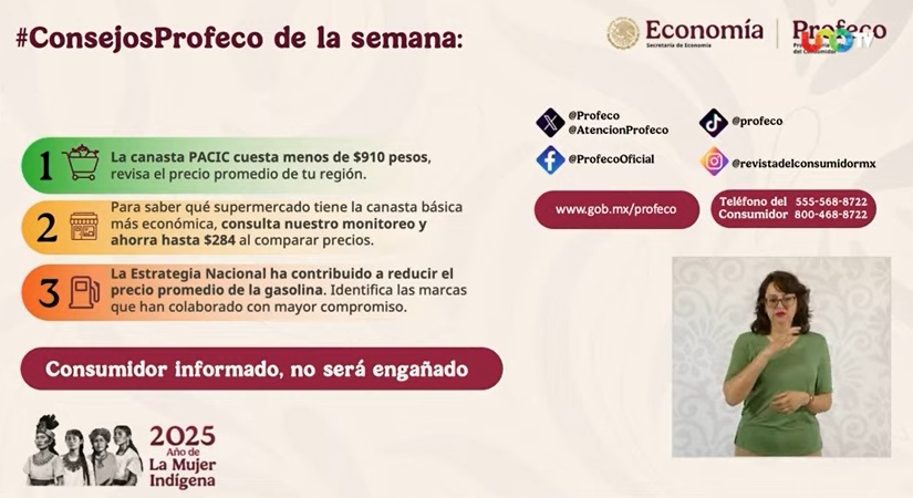 – Profeco, con la sección “Quién es Quién en Los Precios” en la que dará a conocer los costos promedio de la gasolina y la canasta básica, así como recomendaciones para la ciudadanía