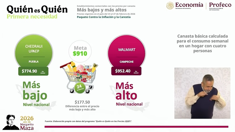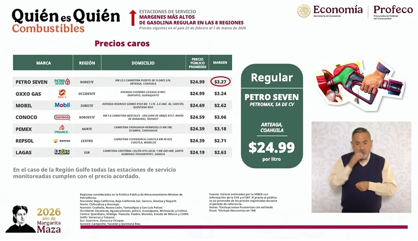 – La Procuraduría Federal del Consumidor (Profeco) para presentar los precios promedios de la gasolina y de la canasta básica, así como la mejor remesadora para los connacionales que residen en Estados Unidos.
