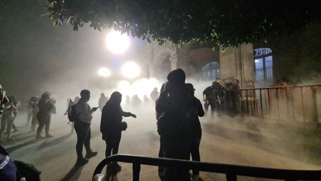 Policías activan gas para dispersar a encapuchadas frente a la Catedral Metropolitana