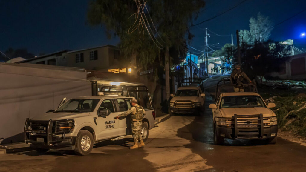 En una primera intervención, personal de Infantería de Marina brindó seguridad perimetral durante el cumplimiento de una orden de cateo en un domicilio ubicado en la colonia Escondida, en Tijuana.