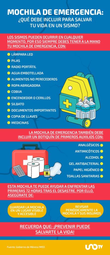 Los temblores pueden ocurrir en cualquier momento, por lo que una mochila de emergencia es una herramienta auxiliar para las familias, con productos y accesorios indispensables para enfrentar una situación de emergencia durante las primeras 72 horas del desastre.