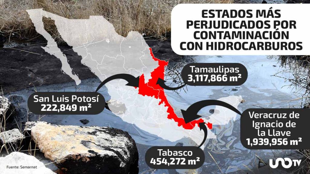 Los estados con mayor superficie contaminada por hidrocarburos son: