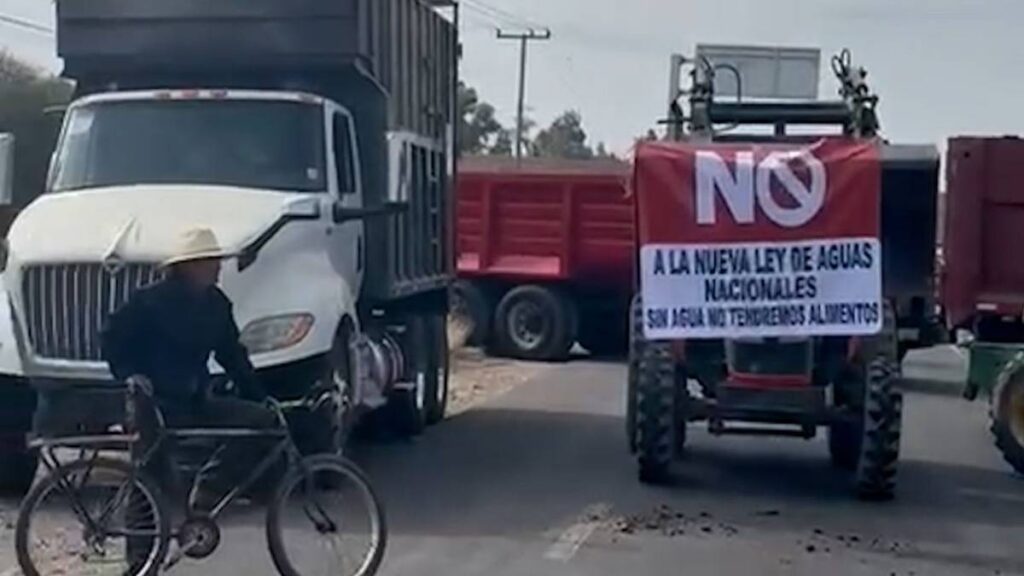 Campesinos y productores agrícolas de Aguascalientes protestan en cuatro puntos carreteros del estado para manifestar su rechazo a la iniciativa de reforma a la Ley de Aguas Nacionales que se analiza en el Congreso de la Unión.