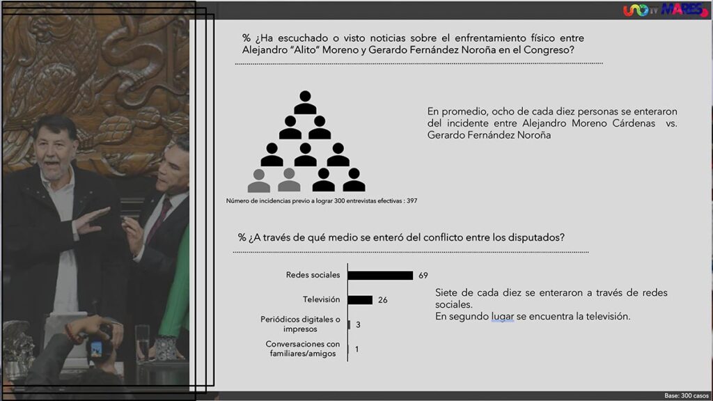 En cuanto al seguimiento legislativo, 62% dijo estar al pendiente de lo que ocurre en el Congreso, aunque 32% de quienes se enteraron del pleito admitieron no tener mayor interés en estos temas. Siete de cada 10 conocieron el caso por redes sociales, confirmando la fuerza de estas plataformas en la difusión de información política.