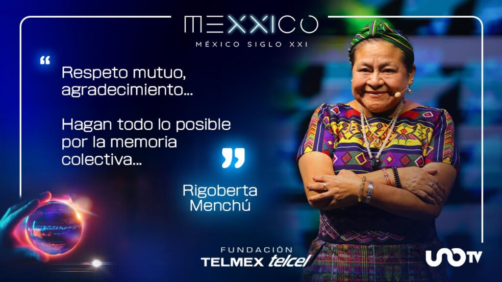 La activista y premio Nobel de la Paz, Rigoberta Menchú, participó en el encuentro México Siglo XXI 2025, donde dejó un mensaje dirigido a jóvenes reunidos en el Auditorio Nacional, en la Ciudad de México. El evento, organizado por la Fundación TELMEX Telcel, reúne cada año a figuras internacionales de la política, el deporte, la cultura y el entretenimiento.